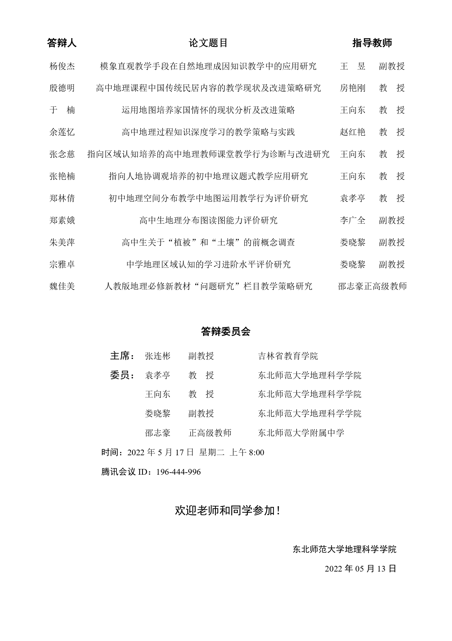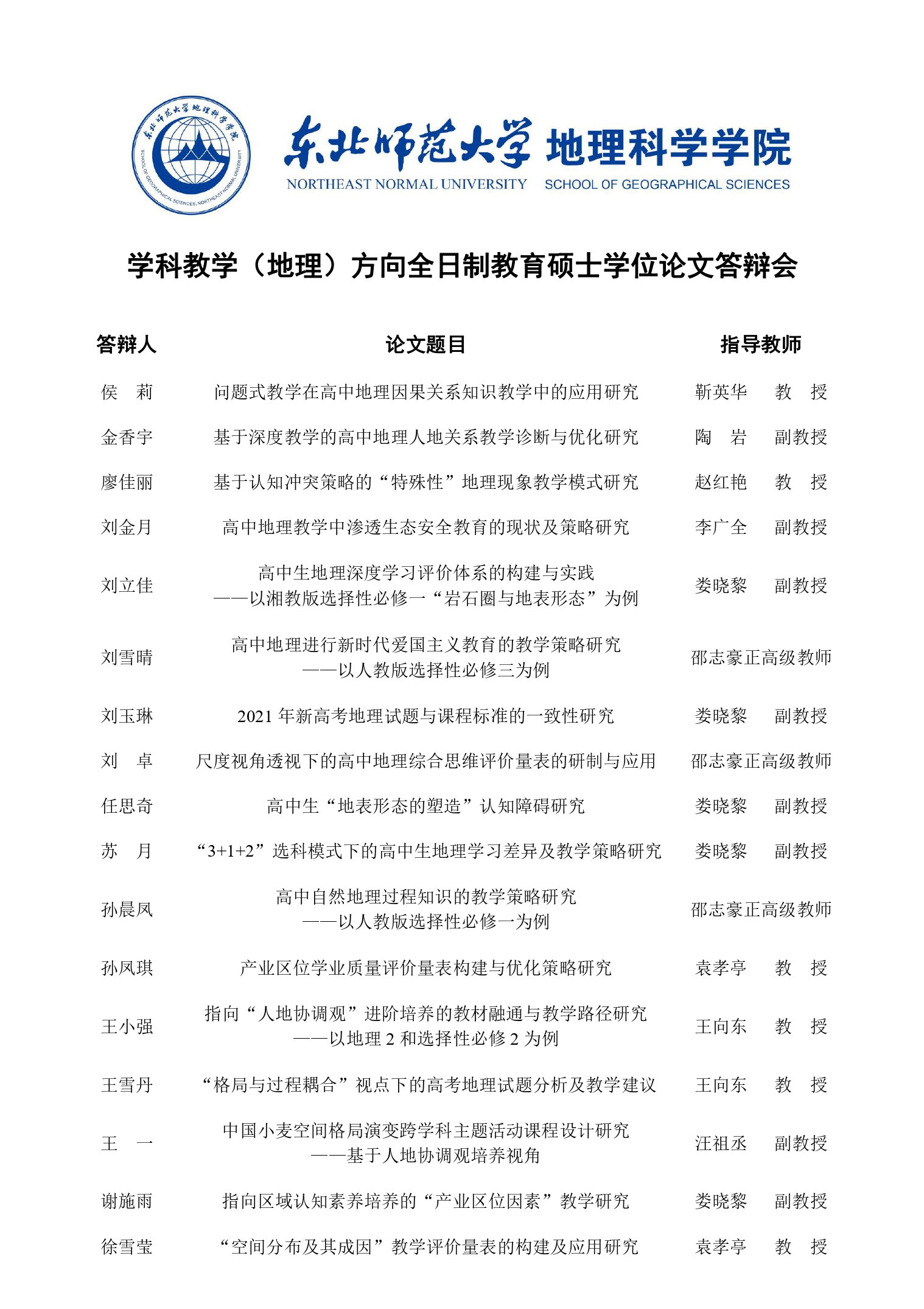 【硕博答辩】学科教学(地理)方向全日制教育硕士学位论文答辩会