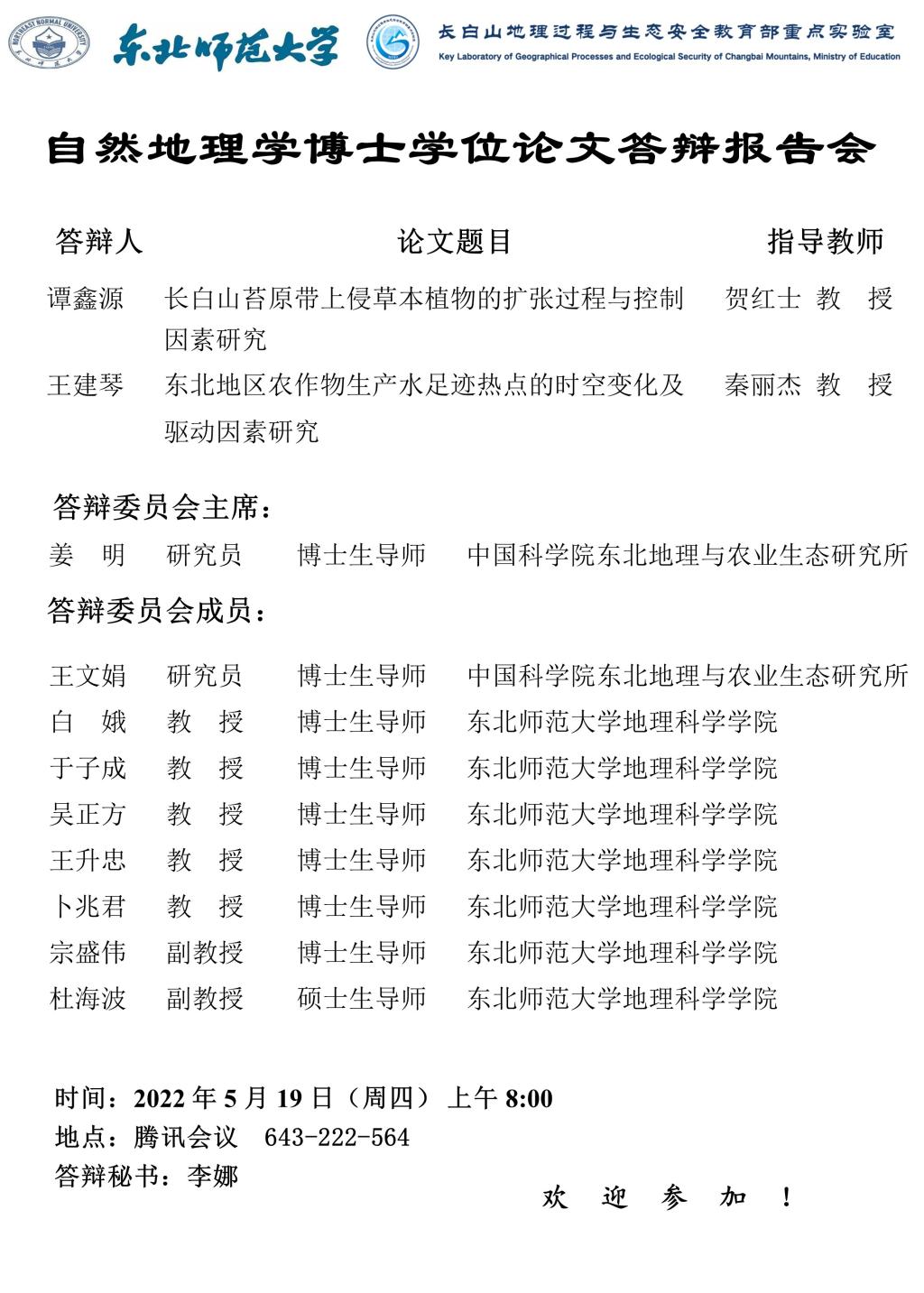 【硕博答辩】自然地理学博士学位论文答辩报告会