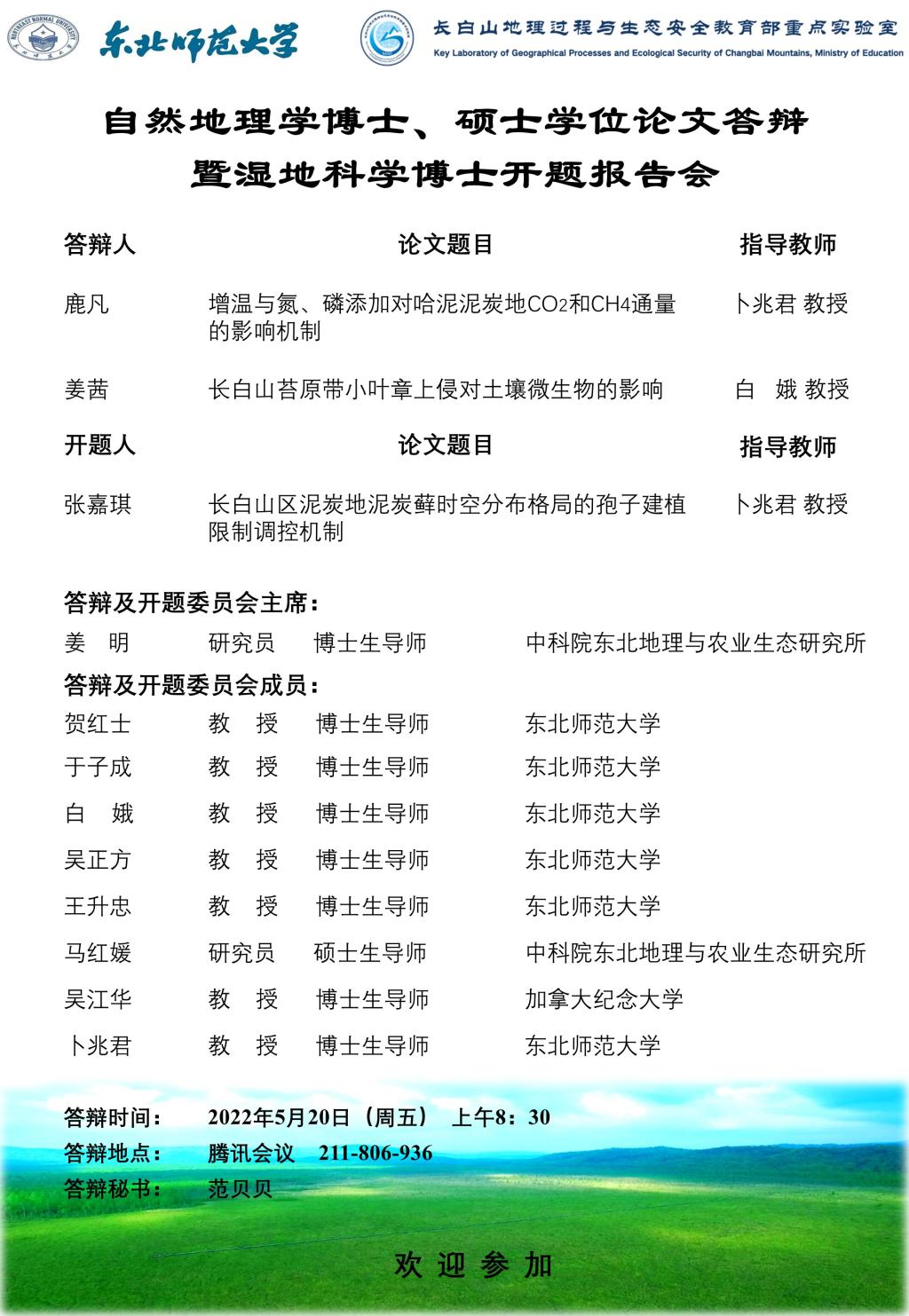 【硕博开题、答辩】自然地理学博士、硕士学位论文答辩暨湿地科学博士开题报告会
