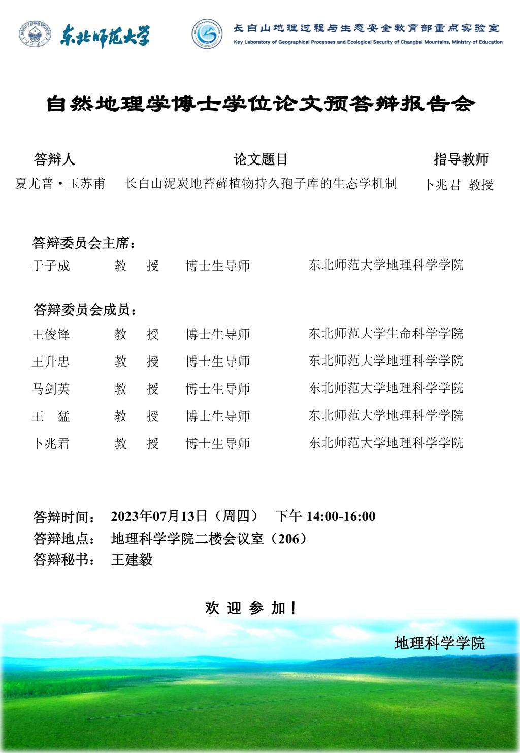 【硕博答辩】自然地理学博士学位论文预答辩报告会