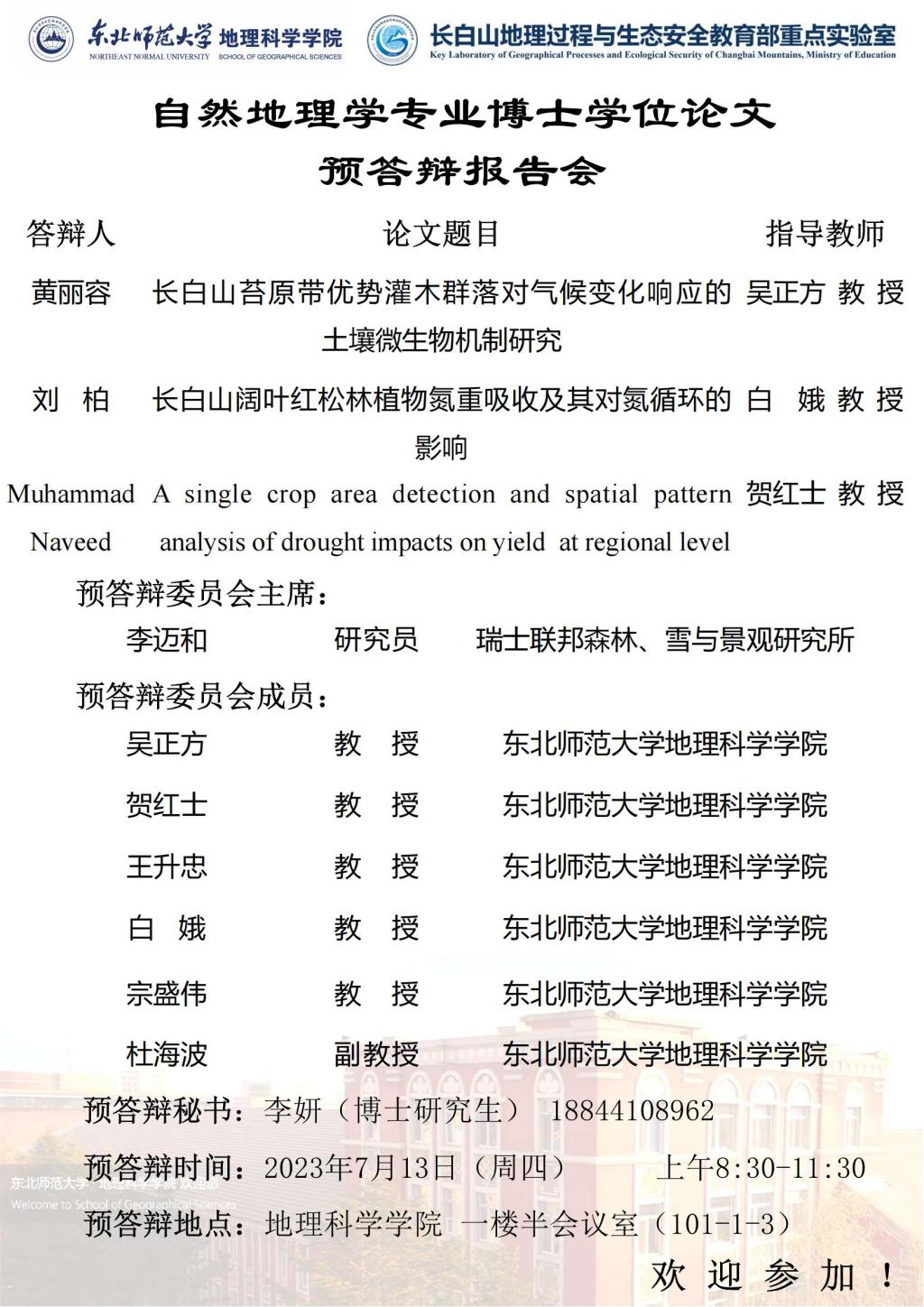 【硕博答辩】自然地理学专业博士学位论文预答辩报告会