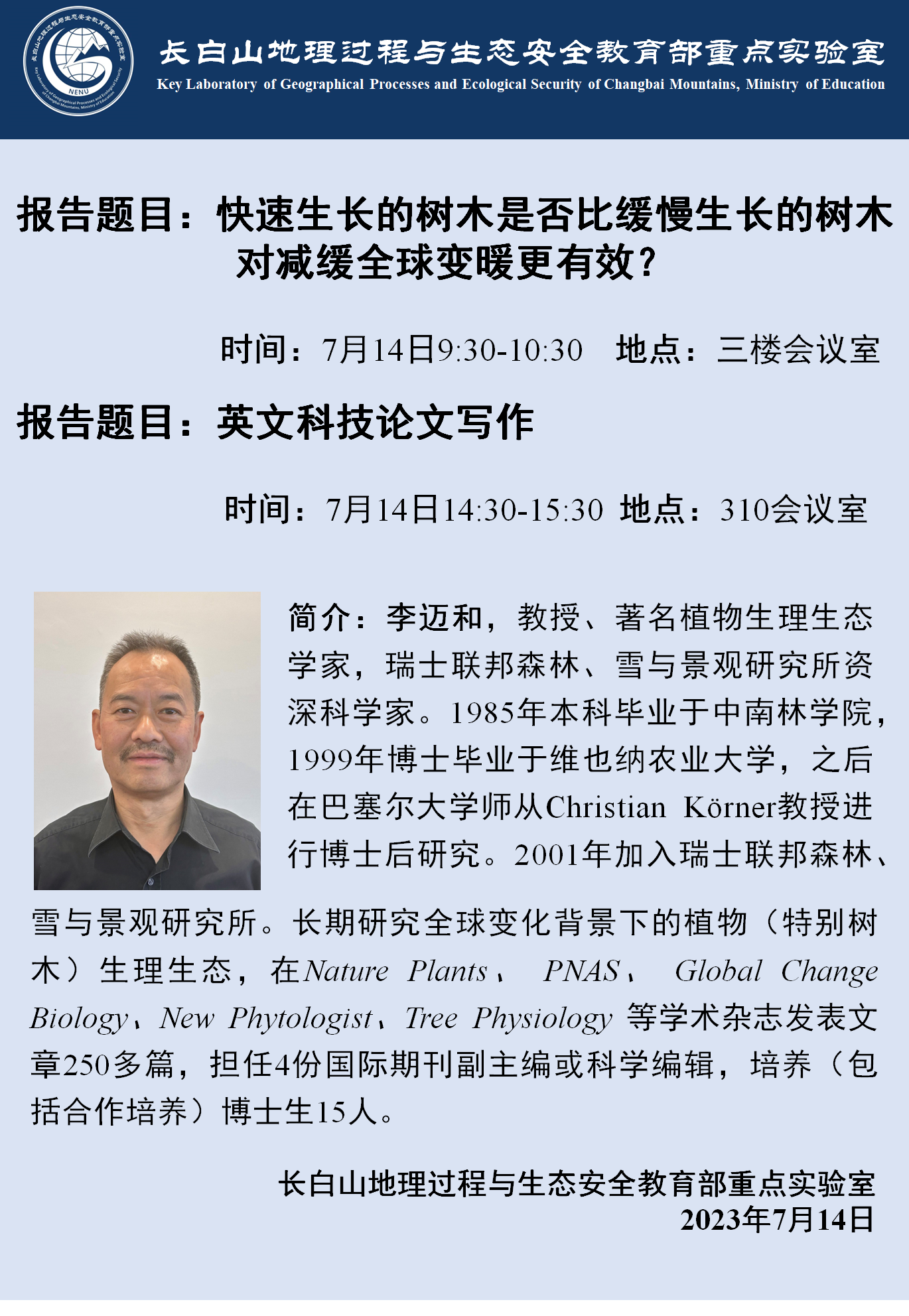 【学术报告】李迈和:快速生长的树木是否比缓慢生长的树木对减缓全球变暖更有效?