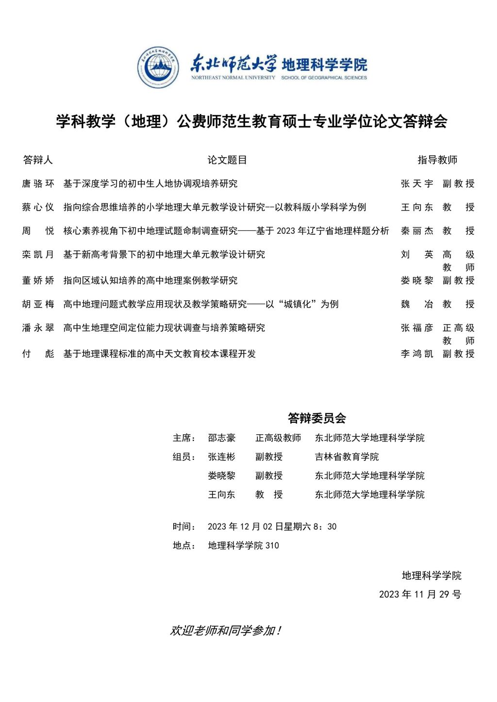 【硕博答辩】学科教学(地理)公费师范生教育硕士专业学位论文答辩会