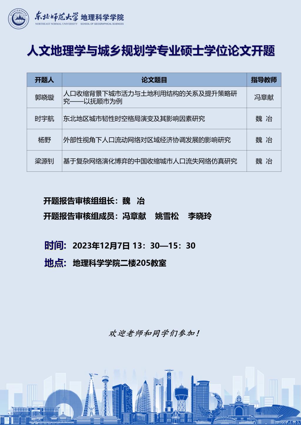 【硕博开题】人文地理学与城乡规划学专业硕士学位论文开题