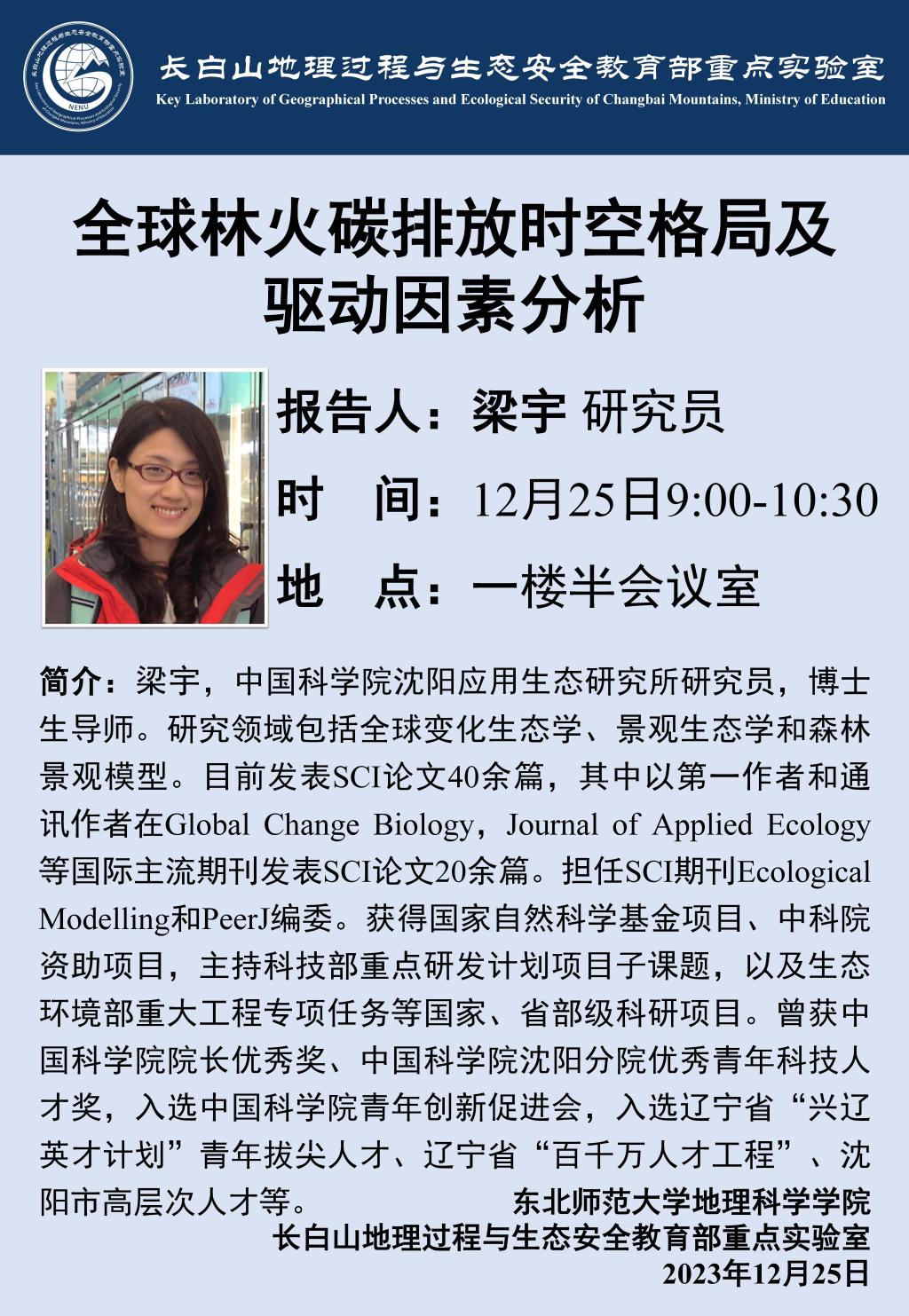 【学术报告】梁宇:全球林火碳排放时空格局及驱动因素分析