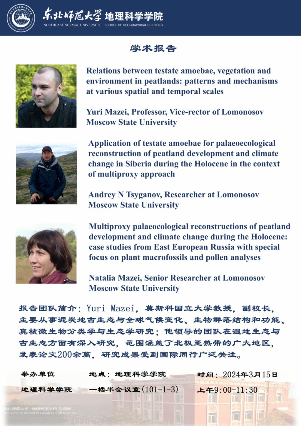 【长白山地学论坛(第2期)】Yuri Mazei: Relations between testate amoebae, vegetation and environment in peatlands: patterns and mechanisms at various spatial and temporal scales