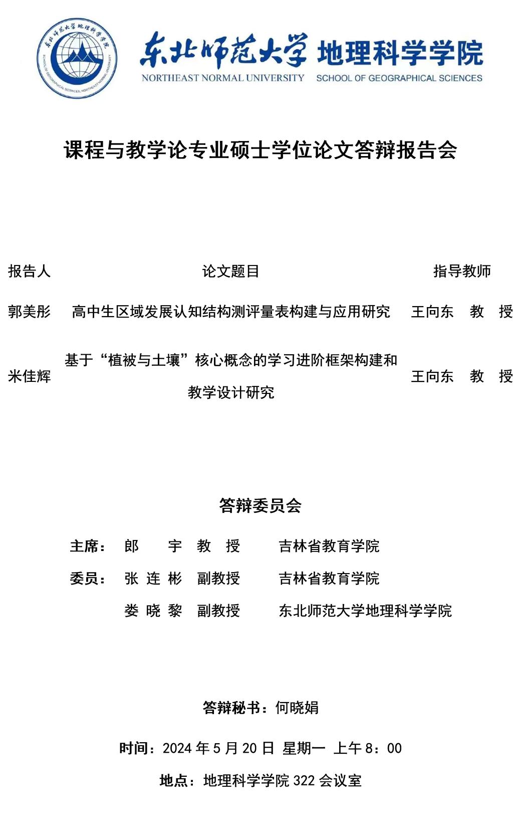 【硕博答辩】课程与教学论专业硕士学位论文答辩报告会