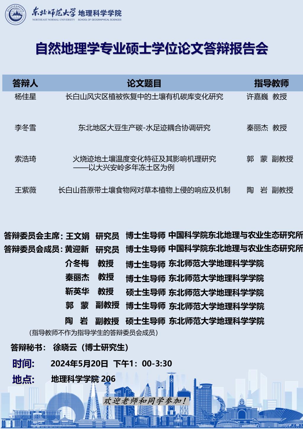 【硕博答辩】自然地理学专业硕士学位论文答辩报告会