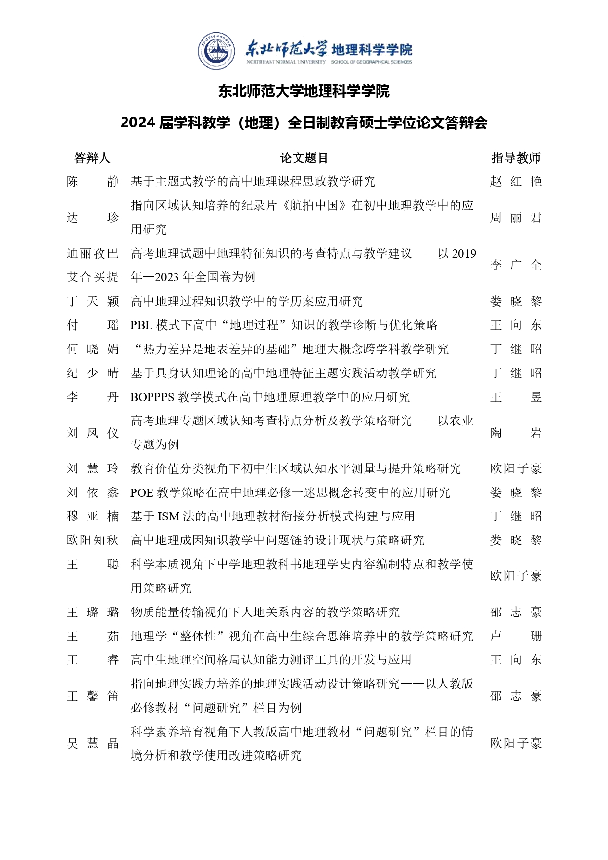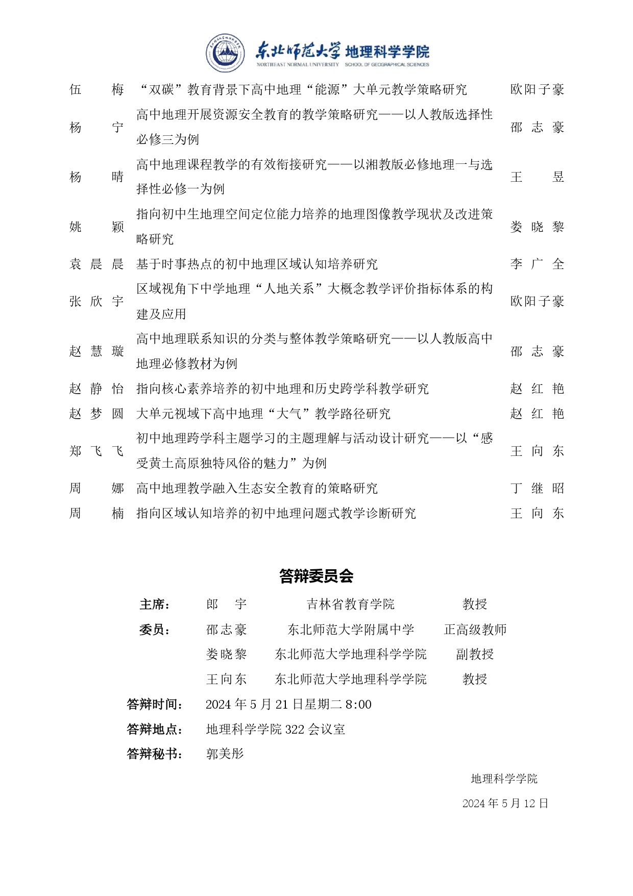 【硕博答辩】2024届学科教学(地理)全日制教育硕士学位论文答辩会