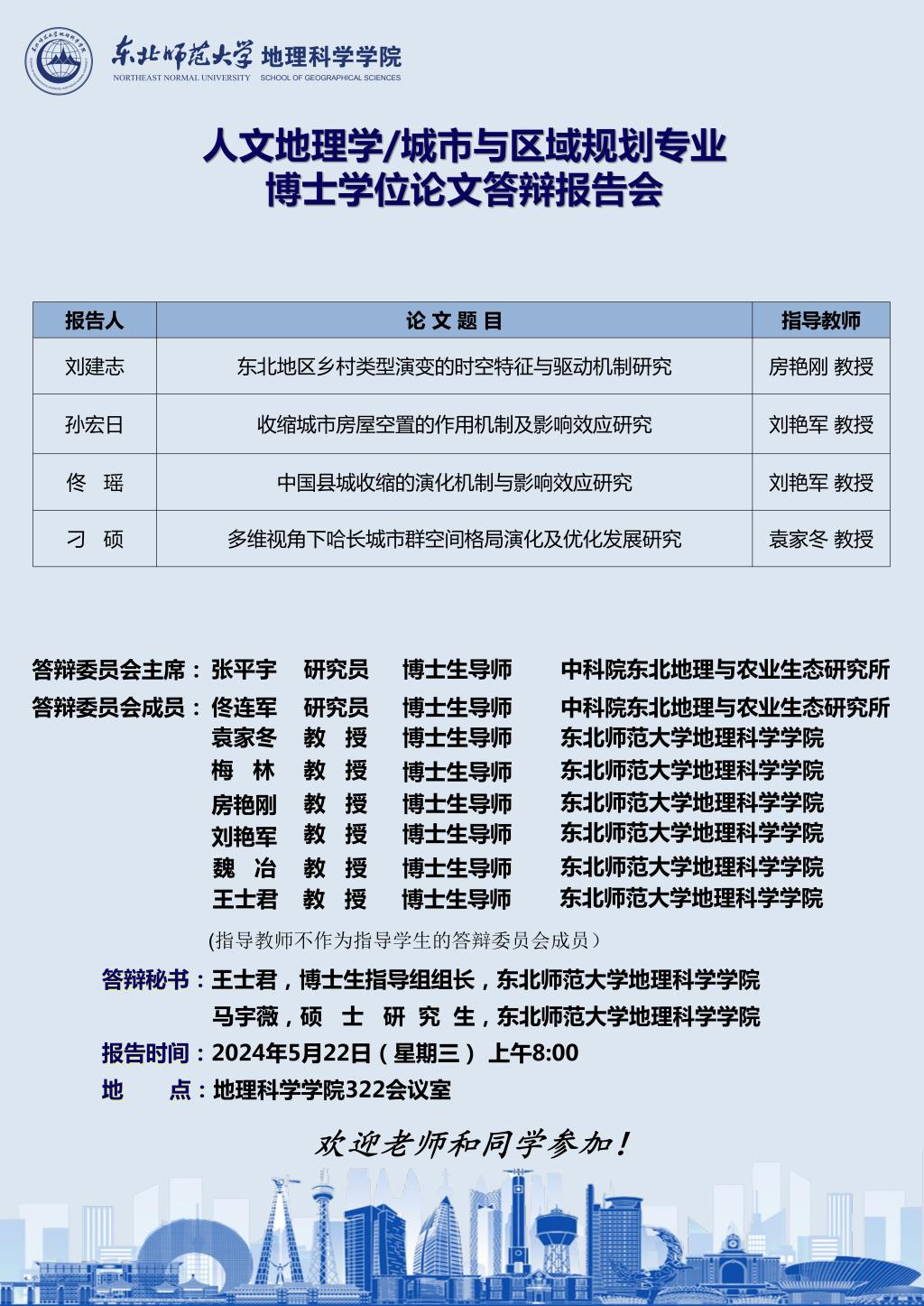 【硕博答辩】人文地理学/城市与区域规划专业博士学位论文答辩报告会