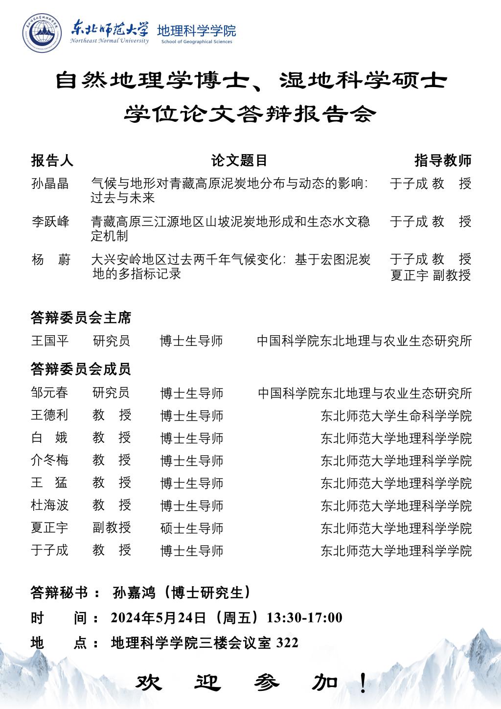 【硕博答辩】自然地理学博士、湿地科学硕士学位论文答辩报告会