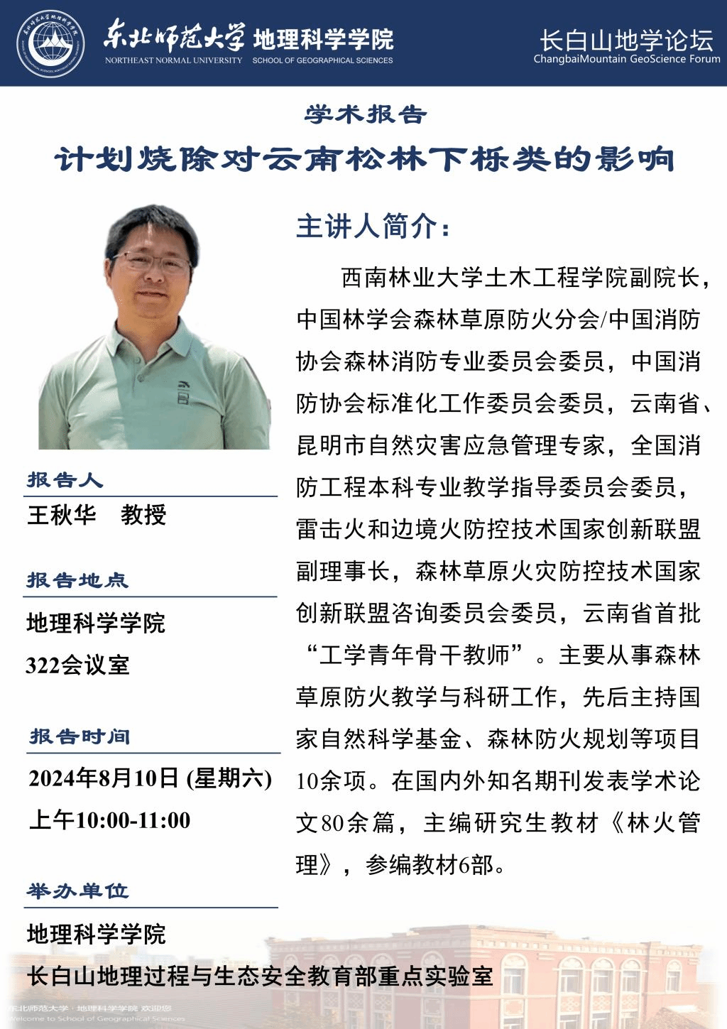 【长白山地学论坛(第七期)】 王秋华:计划烧除对云南松林下栎类的影响