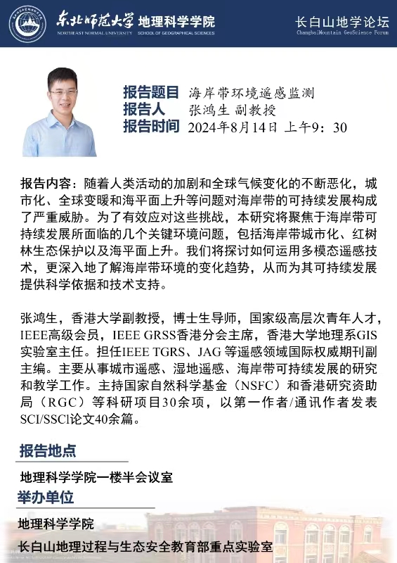 【长白山地学论坛(第九期)】张鸿生:海岸带环境遥感监测