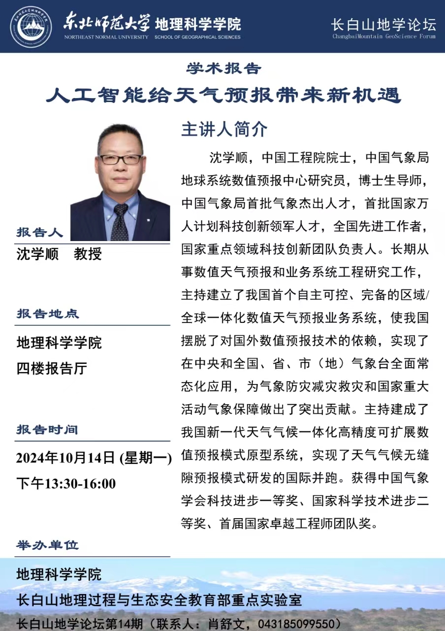 【长白山地学论坛(第十四期)】沈学顺:人工智能给天气预报带来新机遇