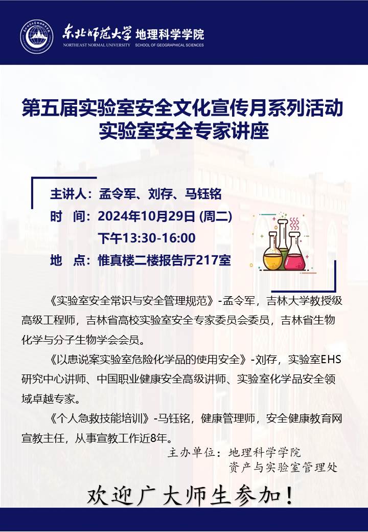 【实验室安全文化宣传月系列活动】实验室安全专家讲座