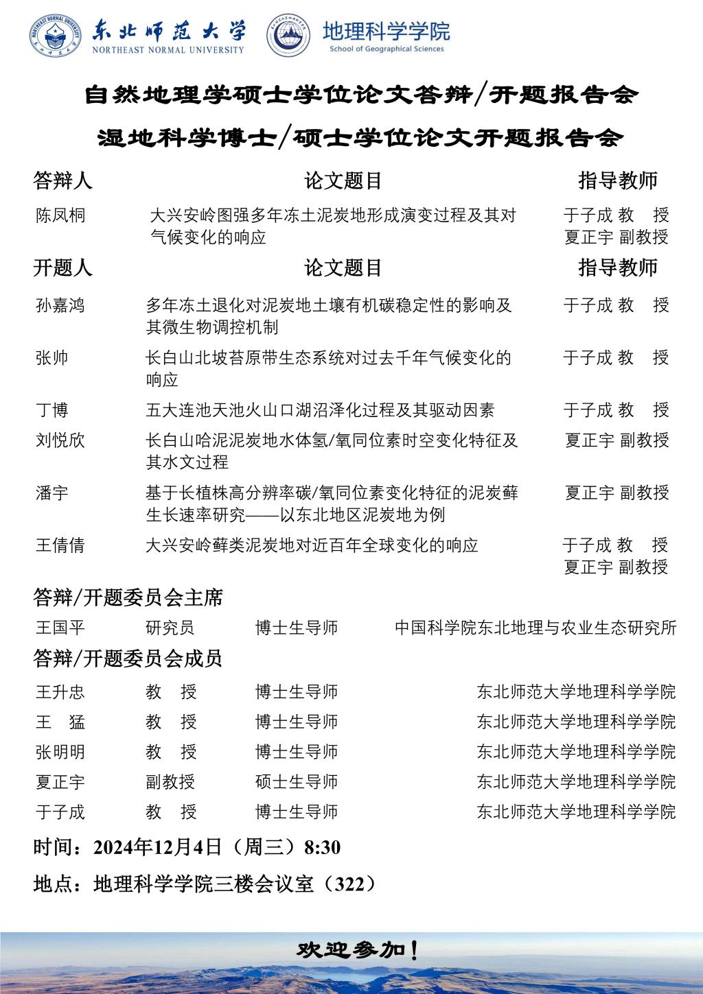 【硕博答辩】自然地理学硕士学位论文答辩/开题报告会暨湿地科学博士/硕士学位论文开题报告会
