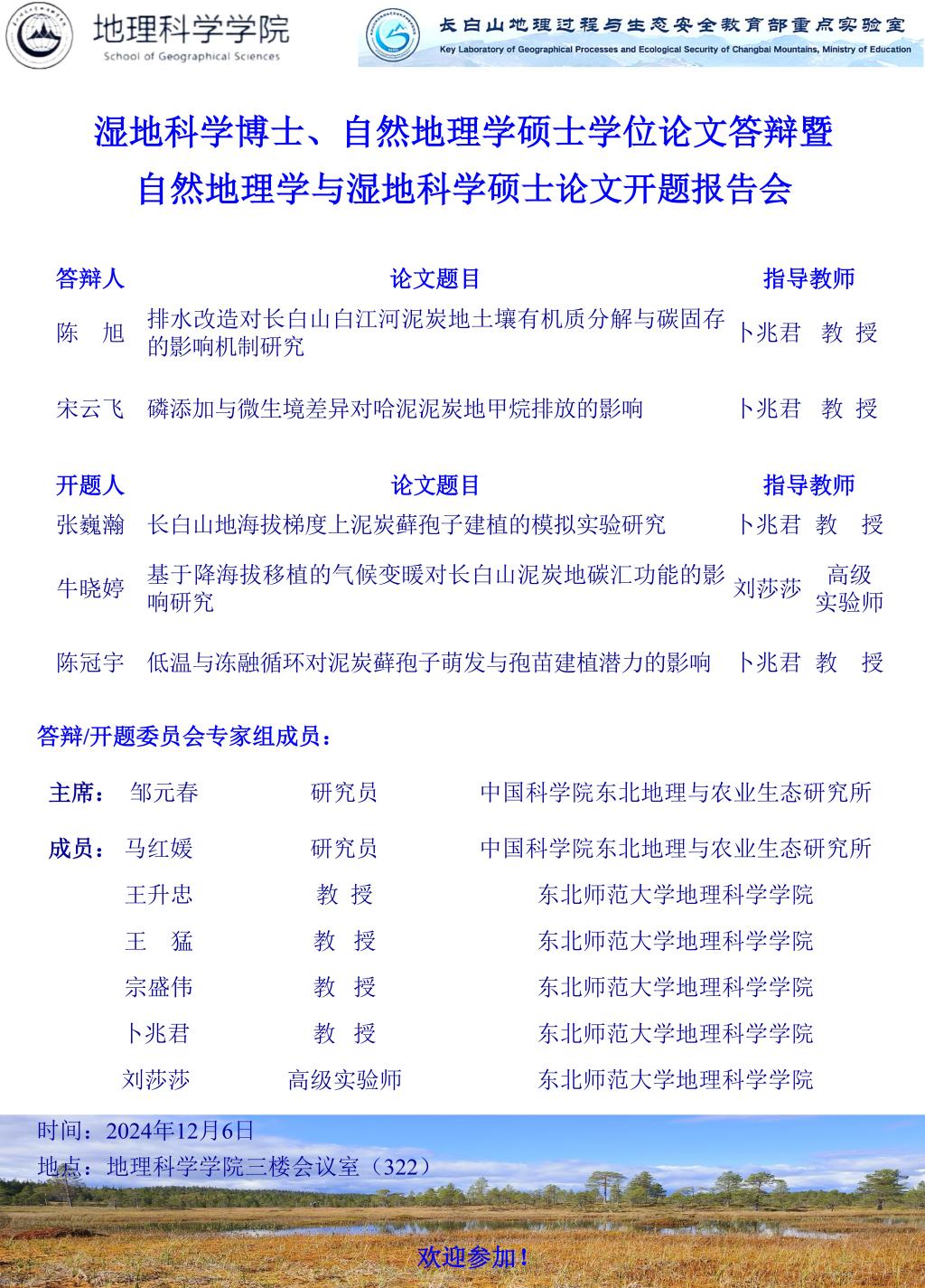 【硕博答辩】湿地科学博士、自然地理学硕士学位论文答辩暨自然地理学与湿地科学硕士论文开题报告会