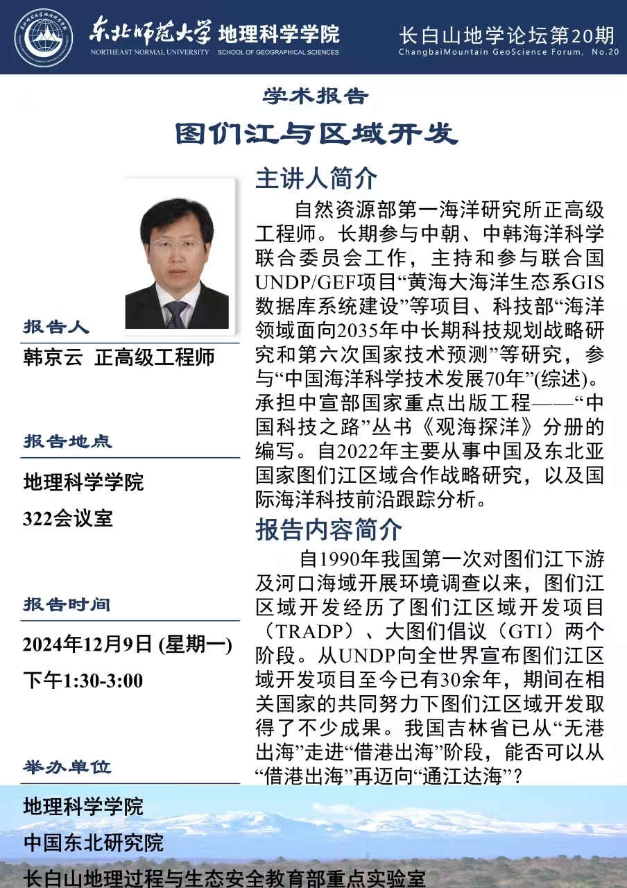 【长白山地学论坛(第二十期)】韩京云:图们江与区域开发