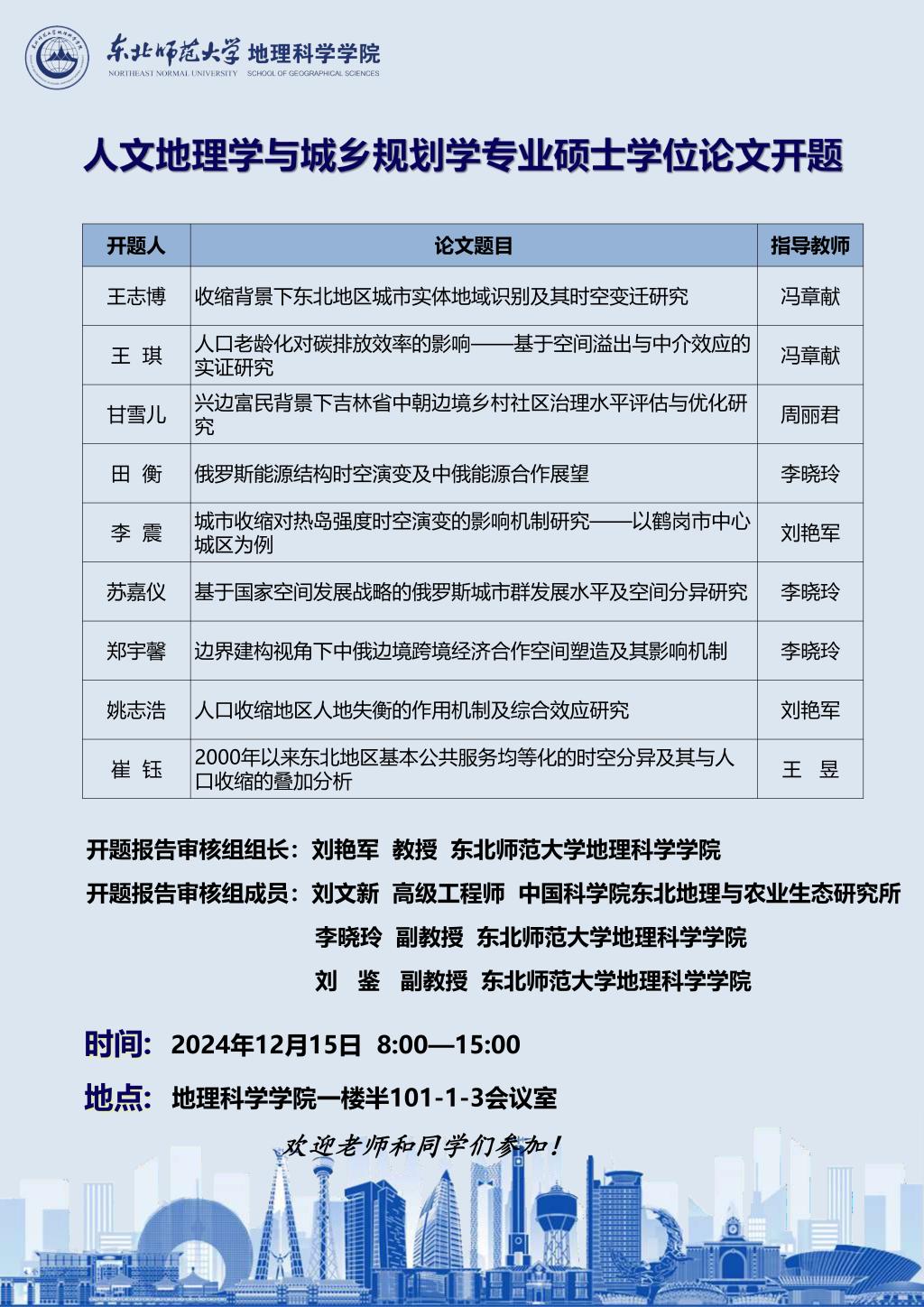 【硕博开题】人文地理学与城市规划学专业硕士学位论文开题