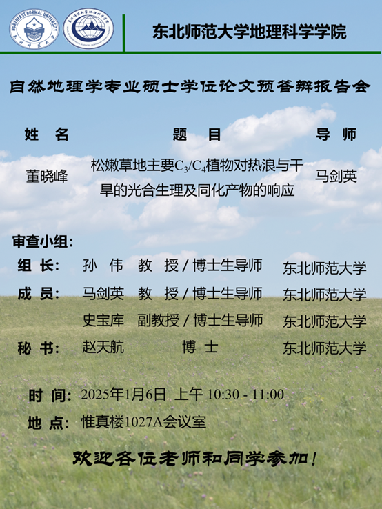 【硕博答辩】自然地理学专业硕士学位论文预答辩报告会