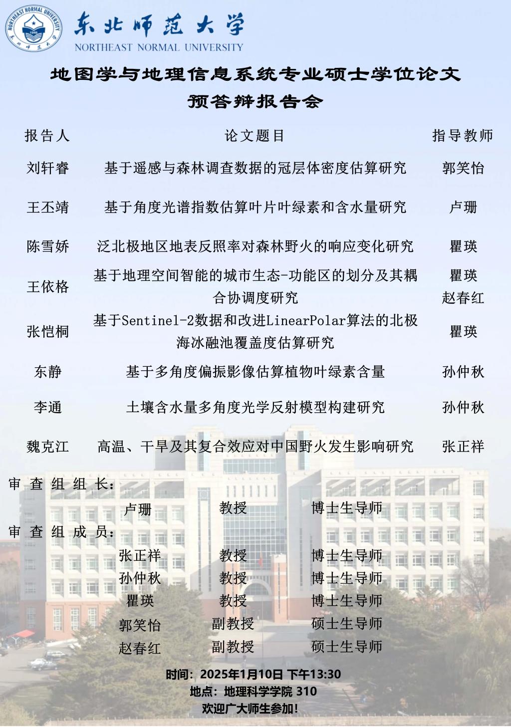 【硕博答辩】地图学与地理信息系统专业硕士学位论文预答辩报告会