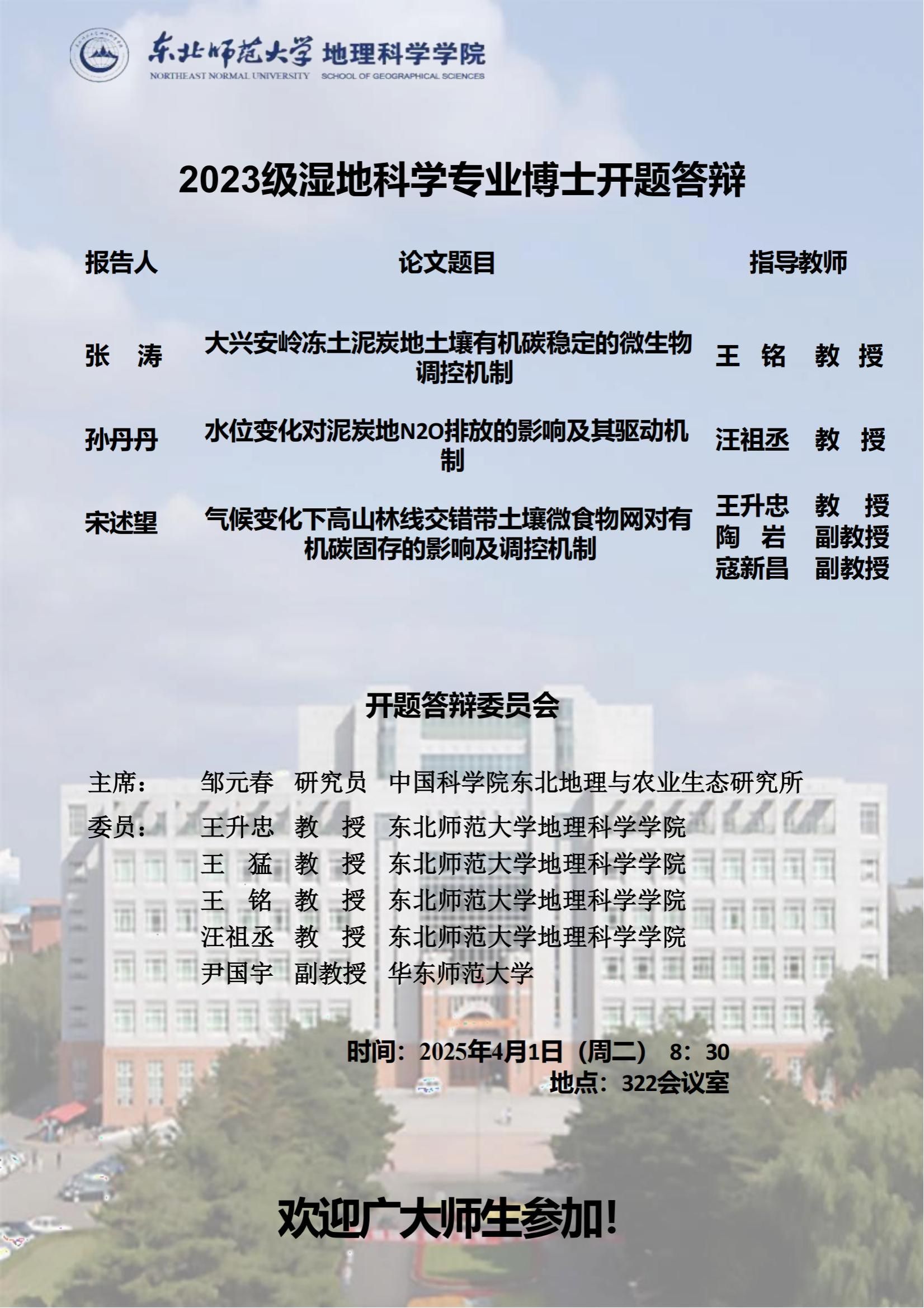 【硕博开题】2023级湿地科学专业博士开题答辩
