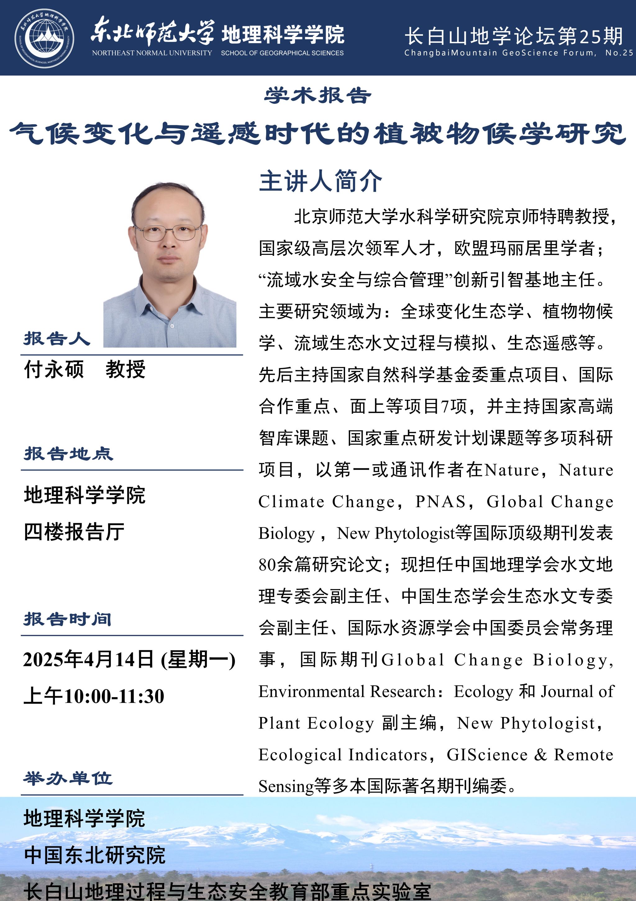 【长白山地学论坛(第二十五期)】付永硕:气候变化与遥感时代的植被物候学研究