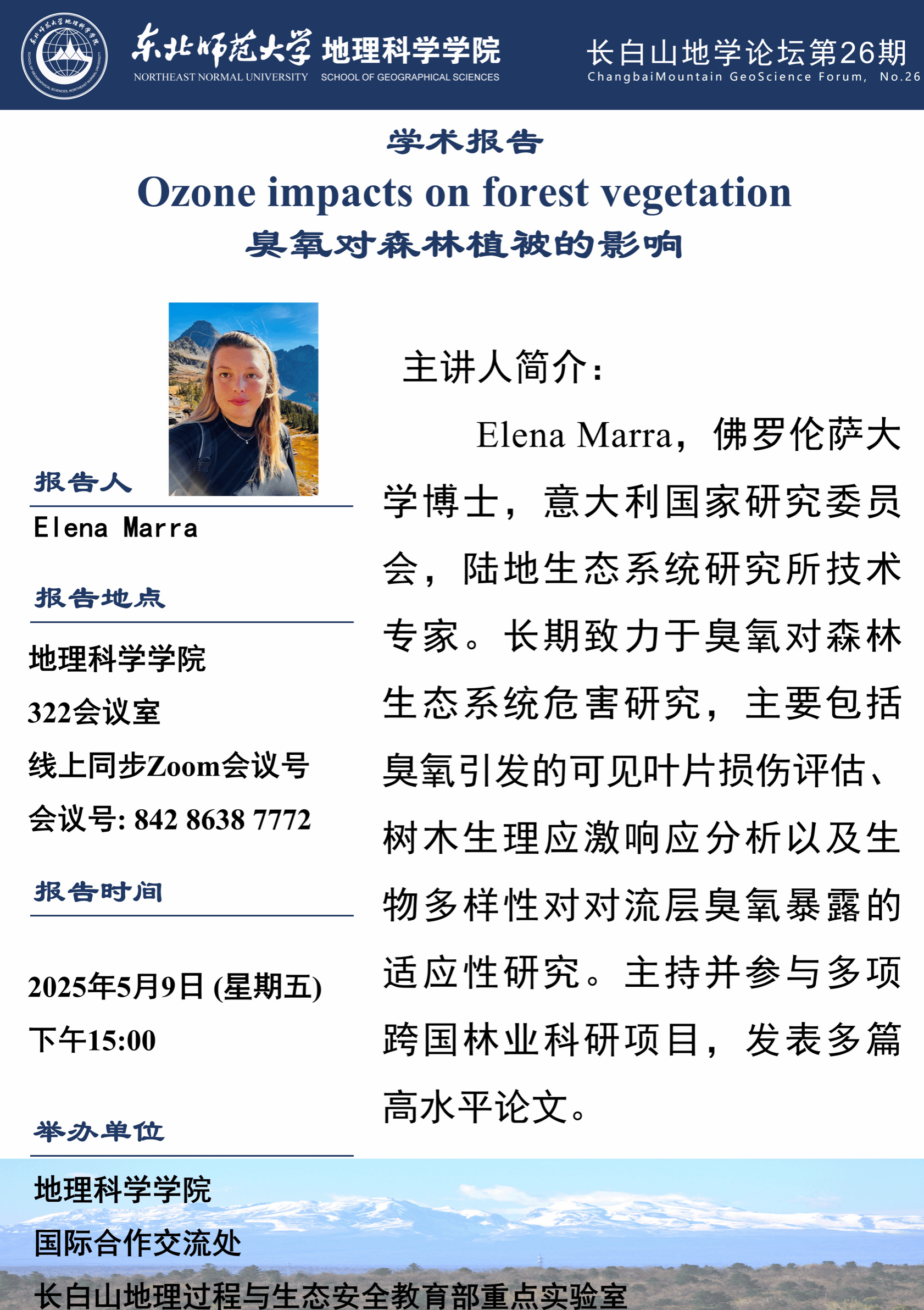 【长白山地学论坛(第二十六期)】Elena Marra:Ozone impacts on forest vegetation