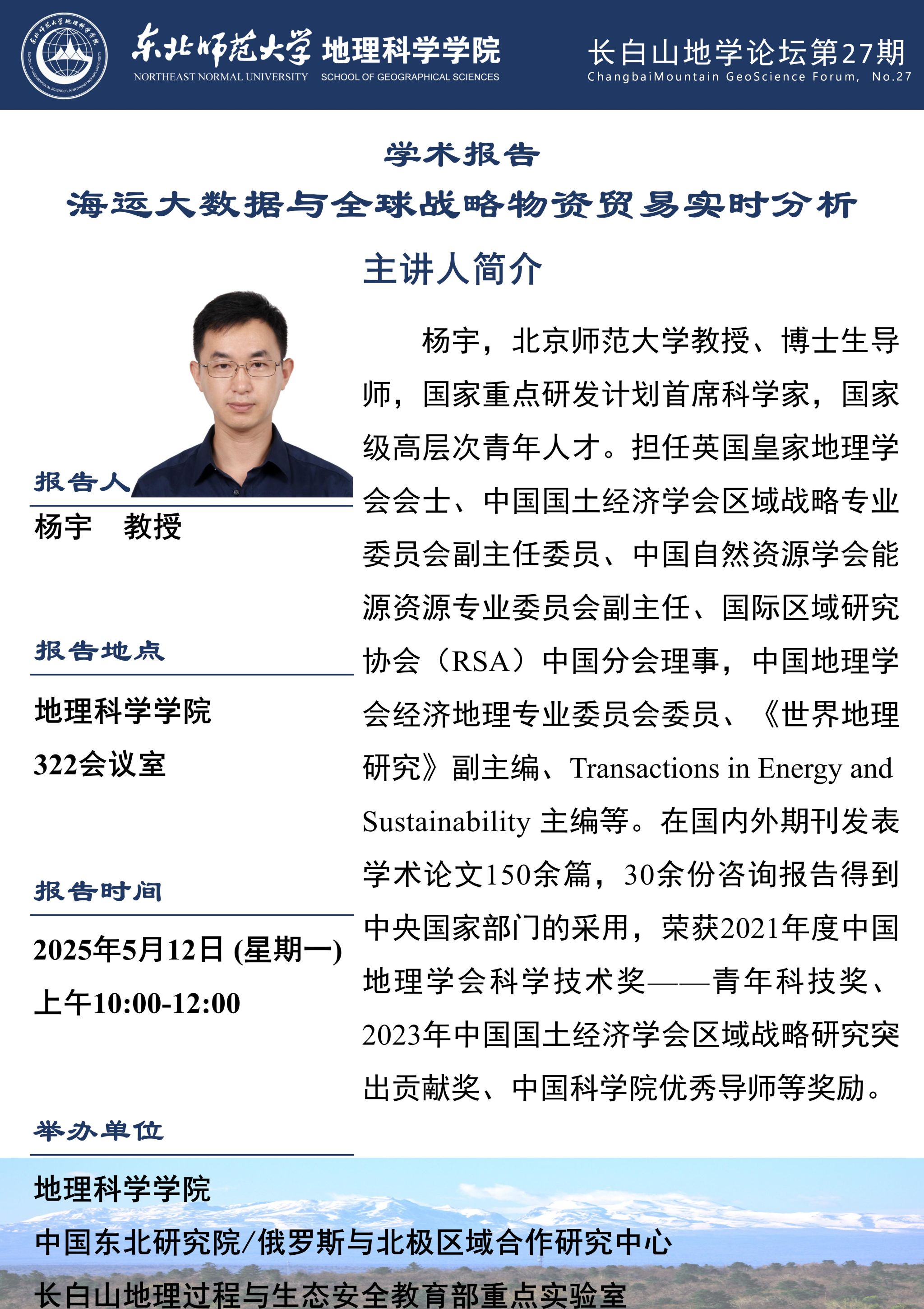 【长白山地学论坛(第二十七期)】杨宇:海运大数据与全球战略物资贸易实时分析