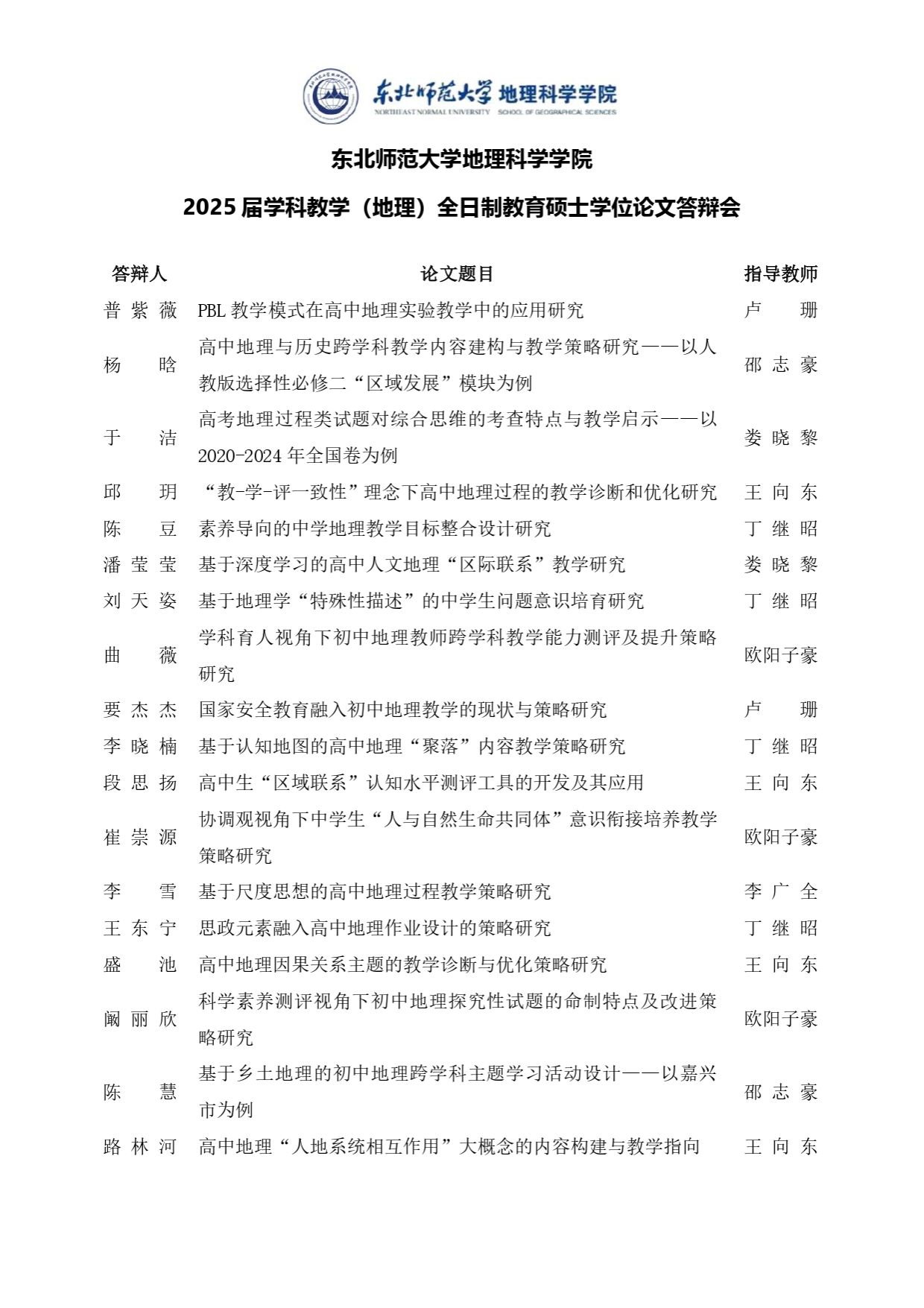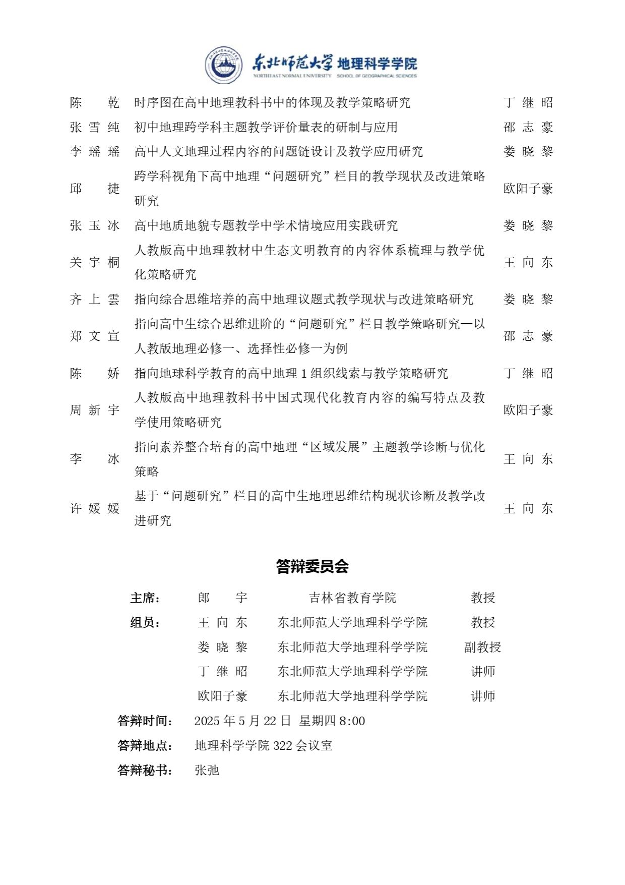 【硕博答辩】2025届学科教学 (地理)全日制教育硕士学位论文答辩会