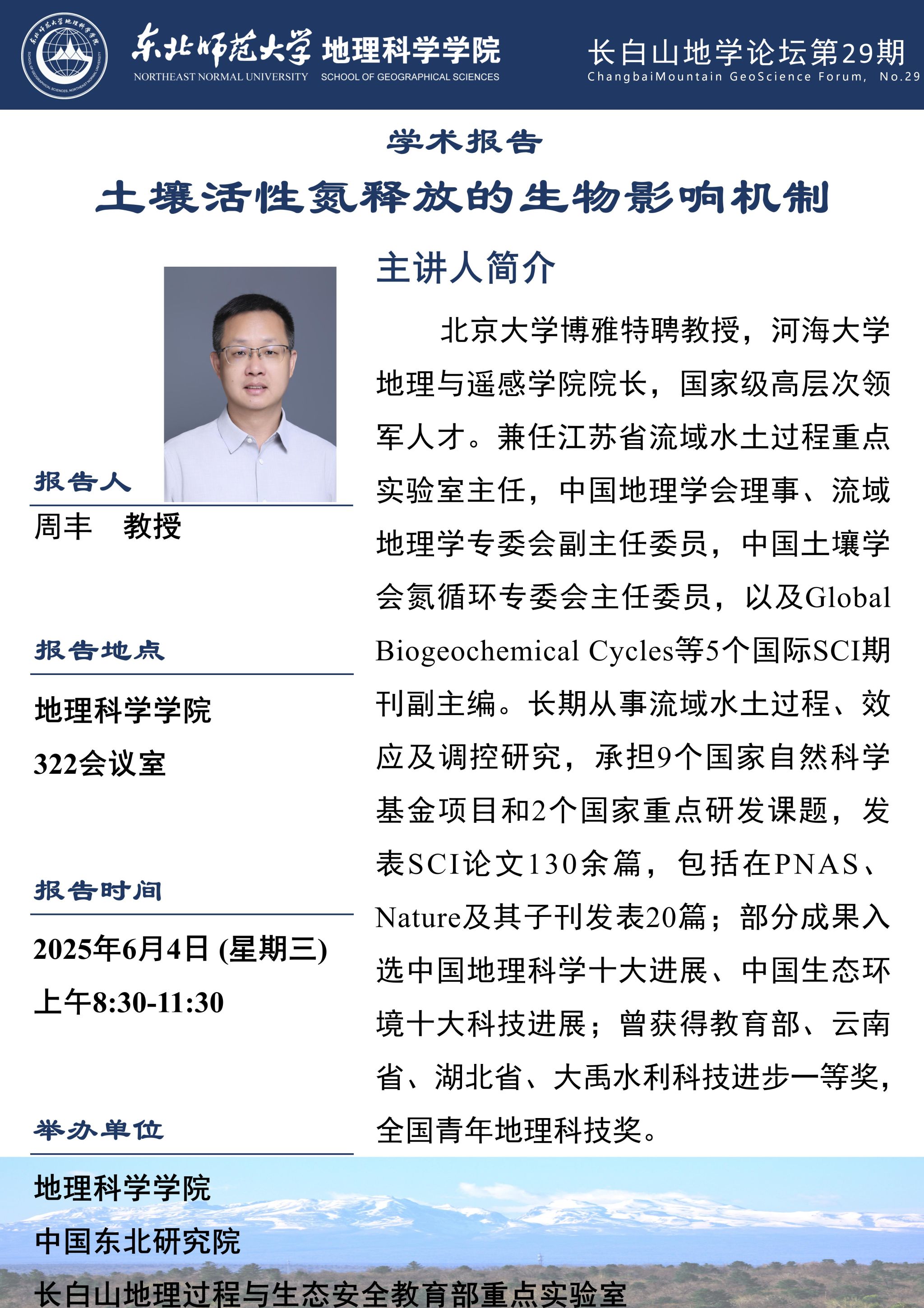 【长白山地学论坛(第二十九期)】周丰:土壤活性氮释放的生物影响机制