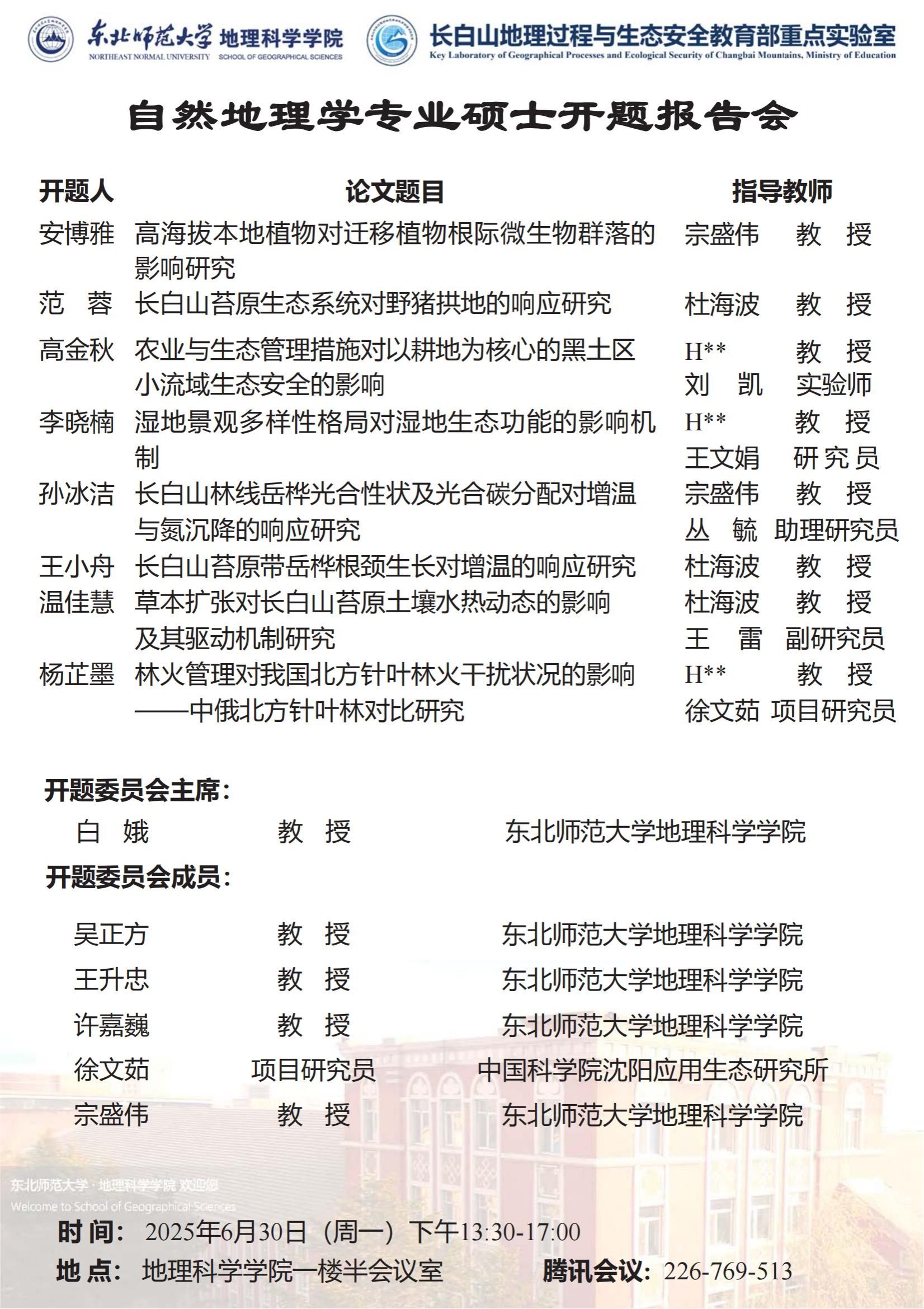 【硕博答辩】自然地理学专业硕士开题报告会