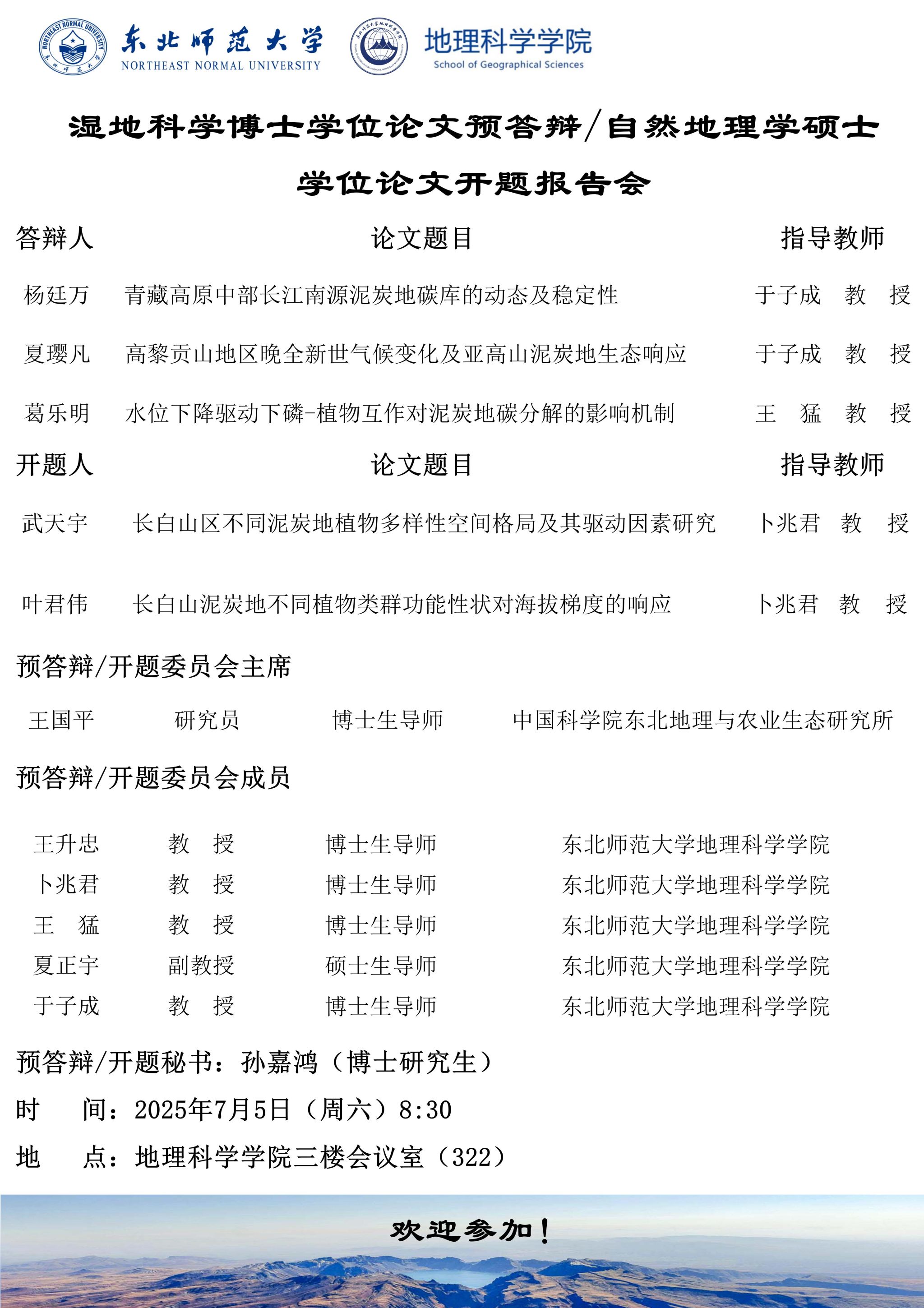 【硕博答辩】湿地科学博士学位论文预答辩/自然地理学硕士学位论文开题报告会