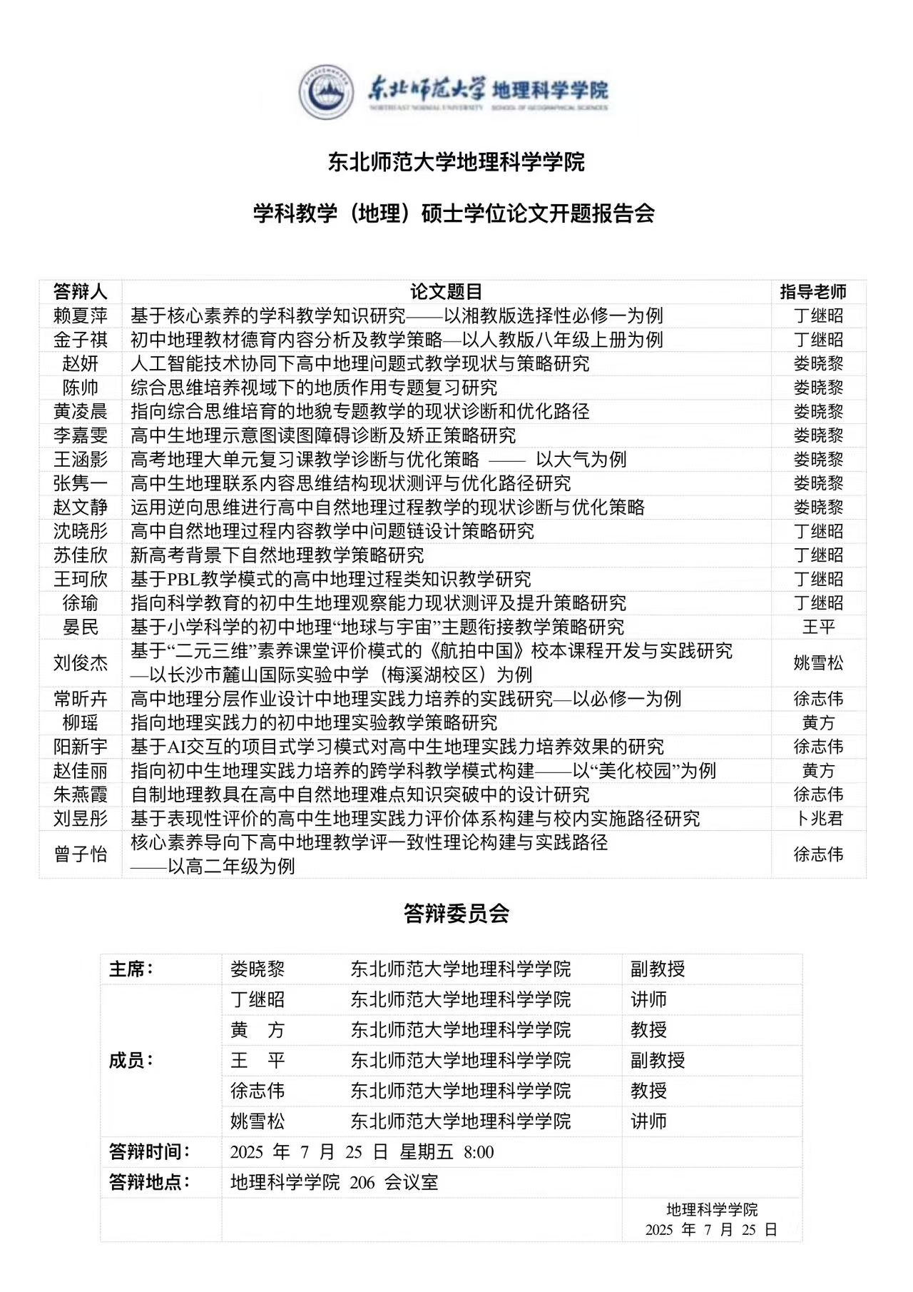 【硕博开题】yl9193永利集团学科教学(地理)硕士学位论文开题报告会
