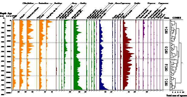 图2. 孤山屯剖面晚冰期以来植被类型演变序列