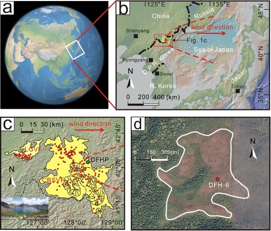 长白山火山区是东北亚著名的火山区之一,该火山区内的长白山天池火山于946-947 CE发生了过去2000年全球最猛烈的两次普林尼式喷发事件之一(“千年大喷发”事件)。近年长白山火山区之下的岩浆房活性逐渐增强,长白山天池火山何时喷发等诸多问题再次引发了社会的普遍关注。但目前的主要研究还仅局限于长白山天池火山的“千年大喷发”事件,有关长白山火山区晚全新世以来喷发序列研究尚未系统展开。准确重建该火山区的喷发历史,有助于了解火山区之下岩浆房的活动规律,并对未来火山喷发的可能性预测提供科学依据。