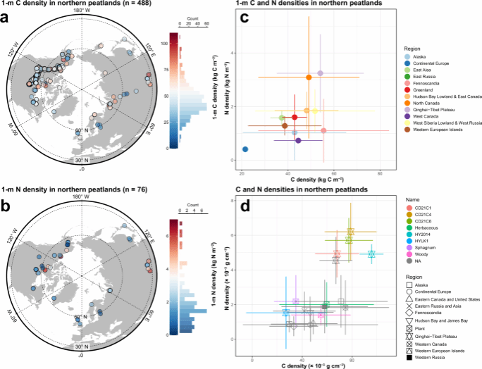 图4 北方泥炭地碳氮密度汇总