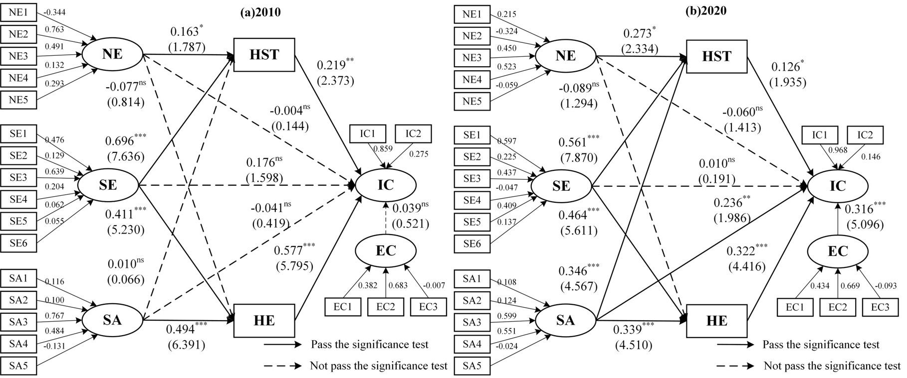 结果表明:(1)城市舒适性对区域创新的影响主要通过间接路径实现,即通过吸引高技能人才和高新技术企业的集聚发挥作用,其效应强度显著高于直接路径。(2)受创新主体的舒适性偏好影响,不同类型的舒适性要素具有差异化的作用机制。服务环境舒适性(SE)的影响最强,同时吸引人才和企业,形成双重驱动。社会氛围舒适性(SA)次之,其对人才的吸引力随时间推移显著增强。自然环境舒适性(NE)的影响最弱,主要通过人才集聚间接促进创新。(3)在中介效应的比较中,高新技术企业(HE)的中介效应显著强于高技能人才(HST)。这主要源于企业作为组织化创新单元,在研发投入、知识管理与规模效应方面具有更高的创新转化效率。然而,本研究也发现,人才的中介效应正快速增强,表明创新生态系统可能正向“人才驱动”模式转型。