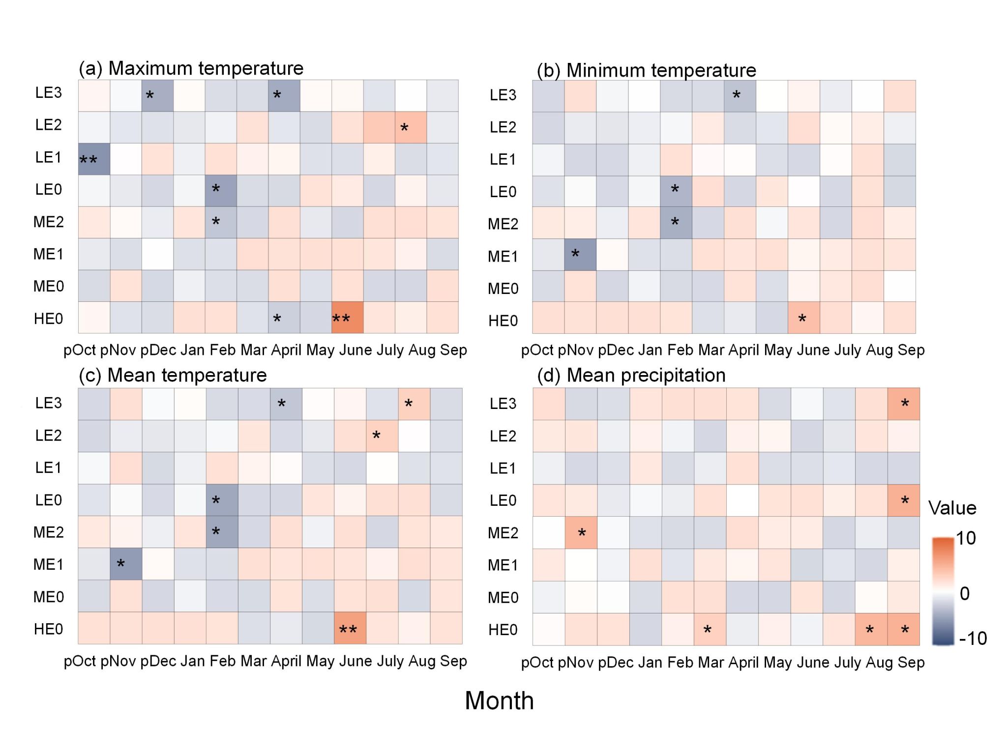 图2. 不同海拔和大叶章上侵梯度下牛皮杜鹃生长的气候敏感性图