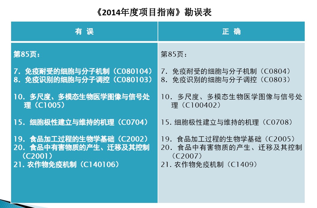 注意:请申请人认真阅读《2014年度国家自然科学基金项目指南》相关项目说明,并依据《2014年度国家自然科学基金项目形式审查明细表》逐项认真核查。