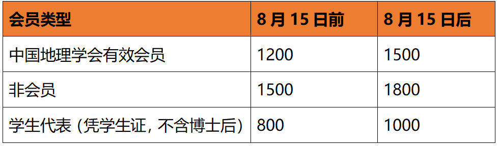 参会代表需要缴纳会议注册费,包含参会许可、资料和茶歇等。会间住宿费、往返交通费自理。注册及缴费网站http://gsc.org.cn/web/#/meeting/f5ce5927-3fce-4637-98b8-ff8e6f729151,注册费由中国地理学会代收并开具发票。