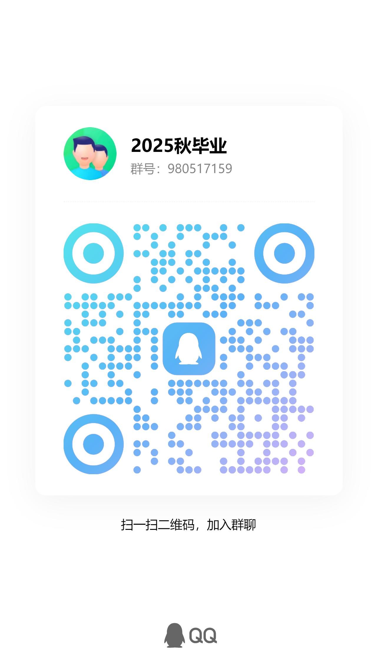 为规范毕业研究生学位申请环节的管理工作,现建立2025秋季学期拟毕业研究生QQ群,群号:980517159,申请进群时请备注年级_专业_姓名,否则不予受理。