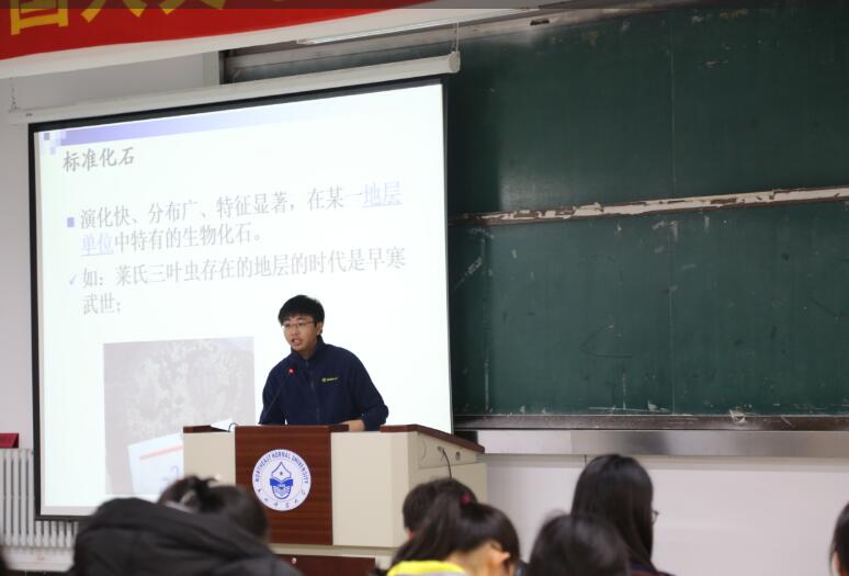 首先,王兴安老师以如何确定岩石的年龄为主题,从用大化石和同位素测年技术来确定地球上岩石的年龄两方面进行介绍,让同学们深层次地了解到如何确定岩石的年龄。之后张明明老师以地史上最大的生物灭绝事件为主题,按照生物的灭绝先后顺序介绍了一些在特定时间灭绝的生物,讲述了小撞击与大撞击对生物灭绝的影响。在讲座的最后,老师说明了生物多样性的研究和保护是我们地理人的责任,激发了同学们的兴趣。