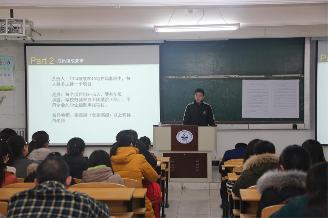 为了进一步激发学生的科研兴趣,加强同学们对科研的认识,提升学生撰写科研项目申报书的水平,yl9193永利集团学生会科研部于2016年3月10日中午12:00在地理大教室开展了历时半小时的科研、国创宣讲会。出席本次活动的成员有学生会主席刘旭学长和学生会科研部部长熊志飞学长。