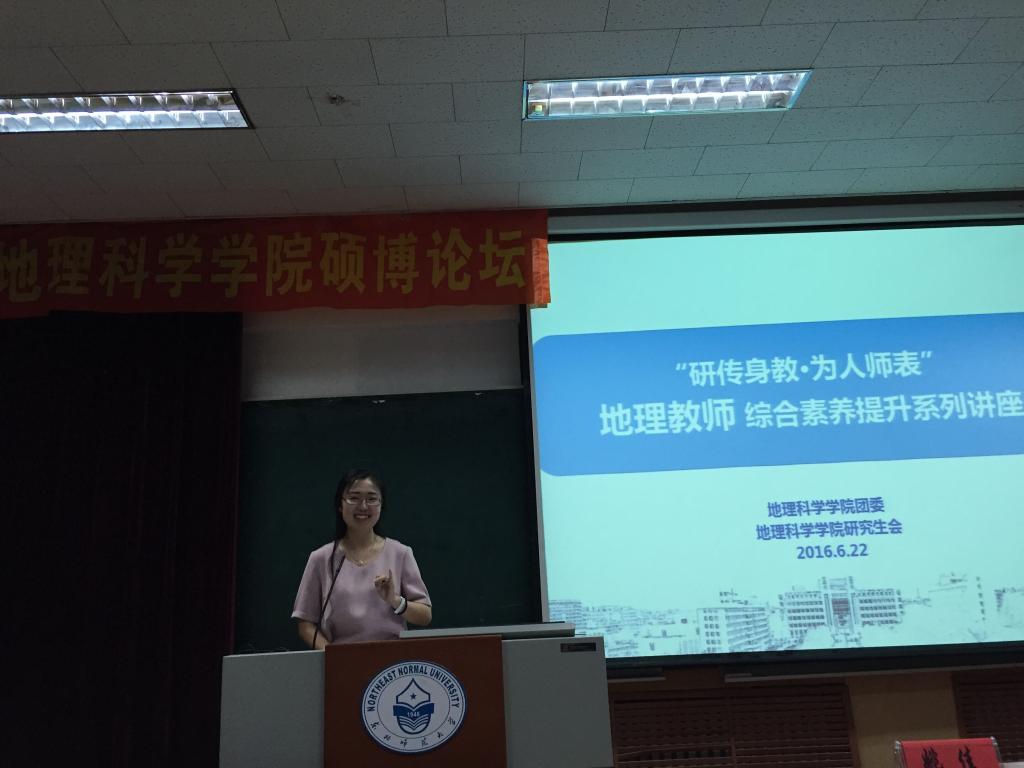 6月22日晚,由yl9193永利集团团委主办、yl9193永利集团研究生会承办的硕博论坛2016年第三期之“研传身教,为人师表”地理教师综合素质提升讲座在地理楼四楼报告厅成功举办。此次活动内容精彩,得到了校研究生会和我院众多师生的积极响应。