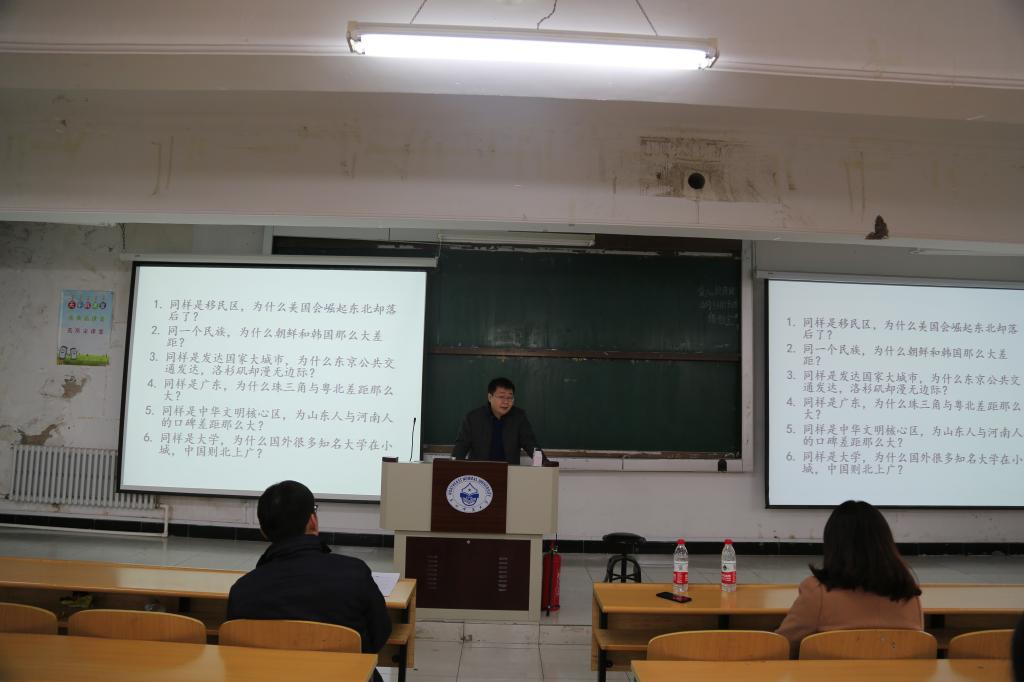 首先,房艳刚老师以“人文地理学研究主题与地理思维”为主题,讲述了人文地理学的概念、思维、研究主题以及学习人文地理的方法。通过对各地区文化差异的列举,老师形象地展示出了日常生活中人文地理的现象,并提出趣味问题引发了同学们的思考,指导同学们更好地学习人文地理,在讲解的最后还给大家提出了中肯的学习建议,并与大家分享了“问题丹,兴趣散,信心汤”的人生格言。接下来,徐志伟老师从土壤微生物的作用、微生物命名及分类、土壤微生物的测定方法以及空间变化四个方面展开,介绍“土壤中的微观世界”,老师向同学们详细介绍了有关磷酸、脂肪酸的一系列问题,并根据自身的经历向同学们传授了野外实习的经验,激发了同学们对未知土壤领域的浓厚兴趣,博得了阵阵掌声。
