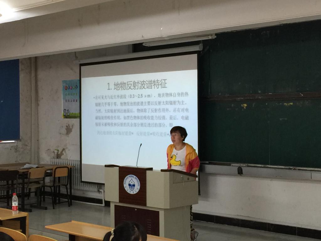 魏冶老师和韩阳老师分别以人文地理和遥感为主题进行了此次讲座。魏冶老师从自身的求学经历展开,进而过渡到地理可视化,通过GIS在人文地理学上的应用,生动形象地展示了当前各种软件在地理信息可视化上的作用,最后在学习方法上,给予了大一的同学们一些实用的建议。韩阳老师则针对“典型地物光谱特征的测量”进行讲解,介绍了地物反射波谱的特征,并以植被、土壤等典型地物光谱特征为例,进行详细的分析,为同学们描绘了一幅日常生活中不能看到的“光的世界”。