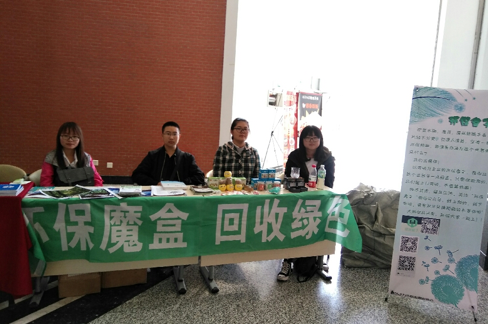 9月25日上午,由中国地质大学学生团体发起,携手永利官网绿色动力环保志愿者协会开展的环保盒子活动正式开始。此活动在北苑食堂进行为期三天的摆台宣传,及为期2个月的上门回收,并得到了领导的关注以及同学们的积极参与。