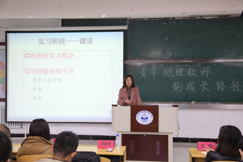 培训会上,特邀嘉宾周春梅老师向同学们分享了主题为“青年地理教师的成长路径”的经验,为同学们指出了一名优秀地理教师应该具备的能力和素质。同学们也积极提出了自己的问题,周老师非常耐心,一一做出了解答。