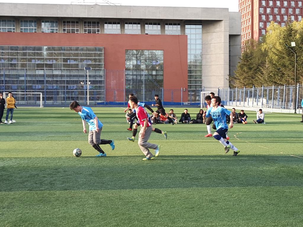 比赛开始前,双方队长各自带着队员做赛前练习并进行战术安排,运动员们斗志昂扬,蓄势待发。接着双方队员轮流握手致意,并与裁判握手。随着裁判一声哨响,比赛正式开始,队员们迅速进入状态。我院队员热情高涨,技术高超,迅速占有控球优势,在开局几分钟后, 便拿下全场比赛的第一分。上半场结束时比分为1:0,我院领先。中场休息时,队员们也不忘紧张制定下半场的比赛战术。下半场比赛开始后,双方都竭尽全力,观众也为运动员们呐喊助威。最终,我院以2:0的比分战胜物理学院,顺利通过第二轮比赛。